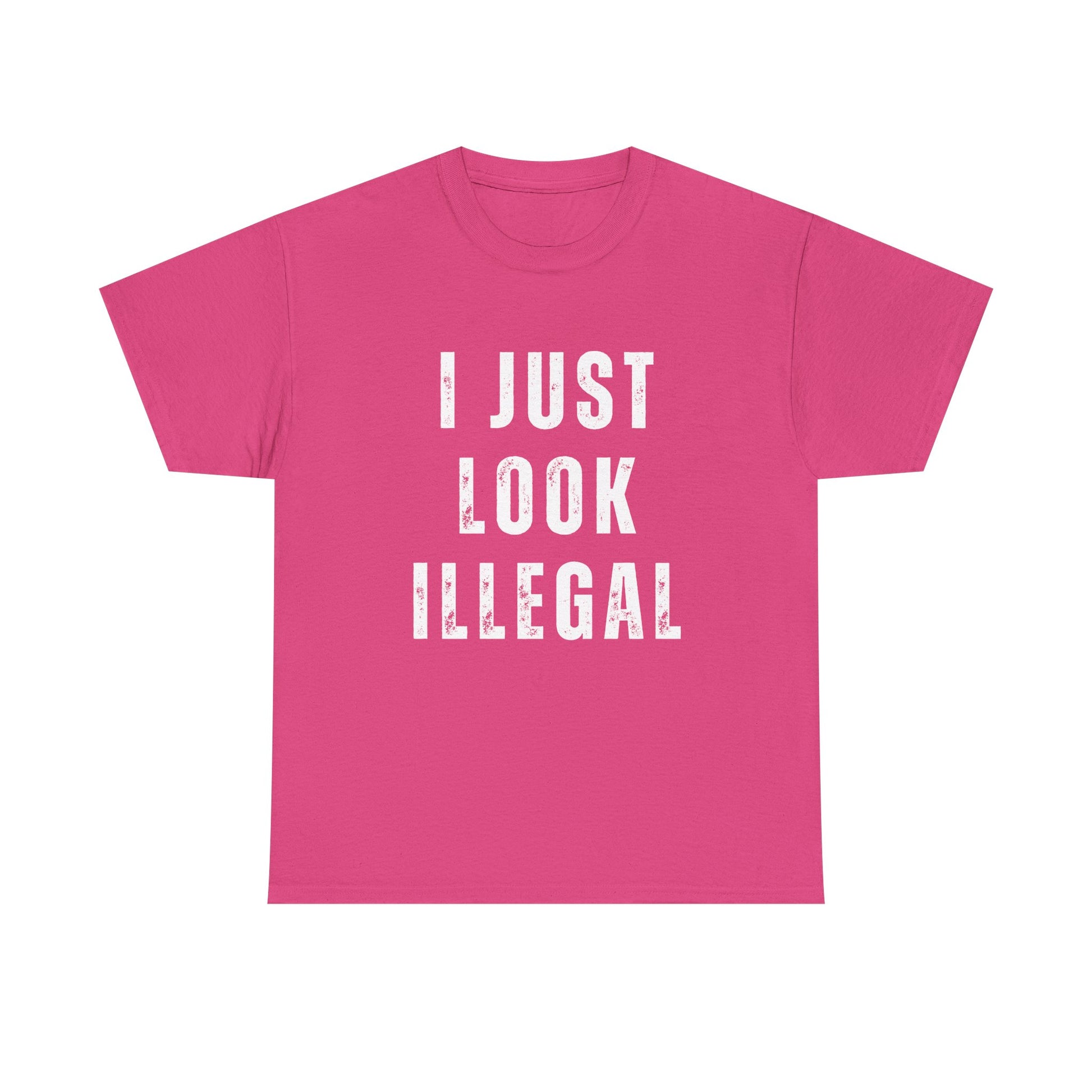 TikTok viral shirt, funny graphic tee, bold statement shirt, “I just look illegal” shirt, trendy streetwear, unisex t-shirt, controversial tee, aesthetic fashion, print-on-demand shirt.